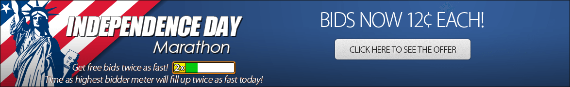 Get free bids 2x as fast! Time As Highest Bidder meter will fill up twice as fast today!