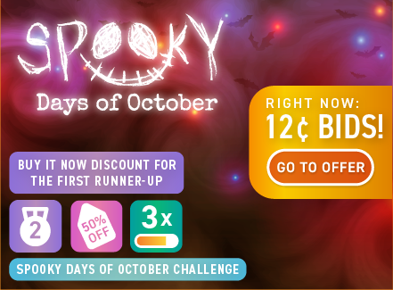 That’s right, Spooky Days of October are back again with great deals! We are ending this month with the Spooky Days of October promotion. This 8-day event will offer discounted auction wins, cheap bid packs, and much more. October finally ends with our Halloween Super Sale which you do not want to miss!